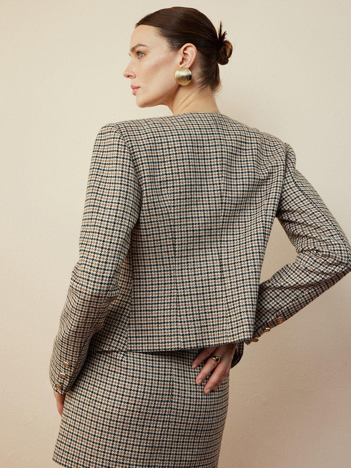 Klasik ekose deseni ve altın düğme detaylarıyla dikkat çeken bu ceket ve zamansız bir şıklık sunuyor. Günlük stilinize sofistike bir dokunuş katacak eşsiz bir kombin!
