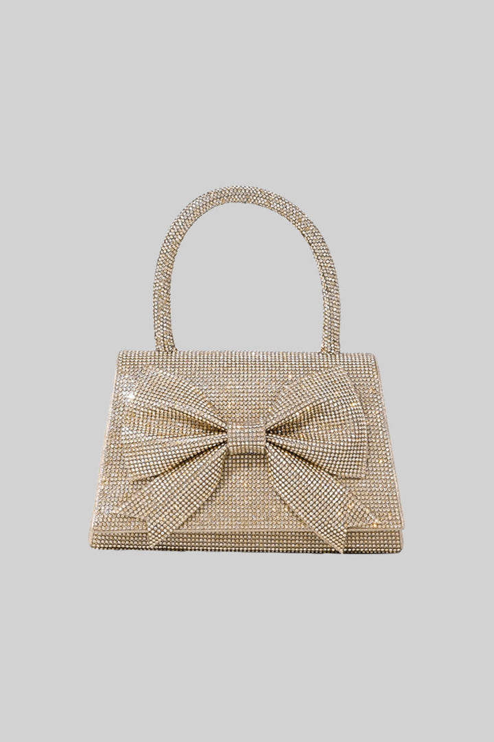 Özel günlerinize zarafet katacak Altın Taşlı Clutch Çanta, göz alıcı taş süslemeleri ve şık tasarımıyla öne çıkıyor. Zarif kavisli sapı ve gösterişli dekoratif fiyonk detayı, çantaya sofistike bir dokunuş katarken, altın zincir askısıyla çok yönlü kullanım sunar.