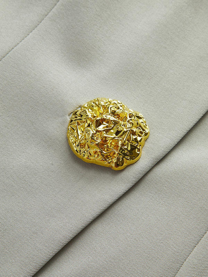 Modern ve zarif bir tasarıma sahip bu bej takım, altın düğme detaylarıyla sofistike bir dokunuş sunuyor. İş hayatı ve özel davetler için ideal bir şıklık!