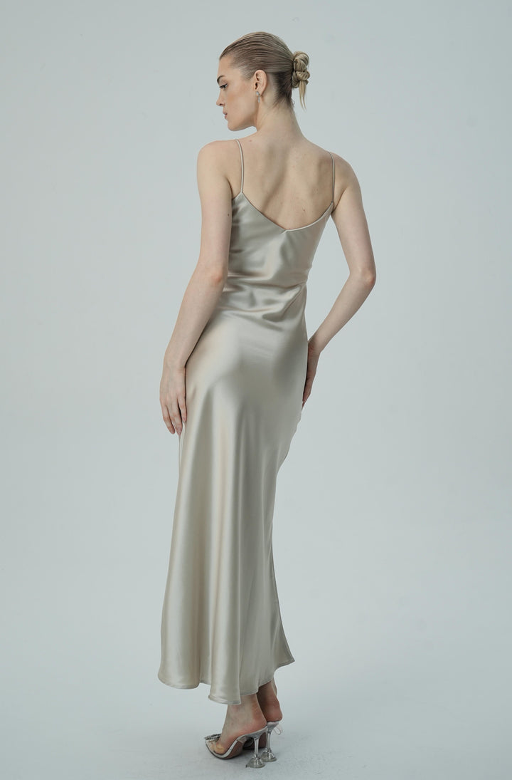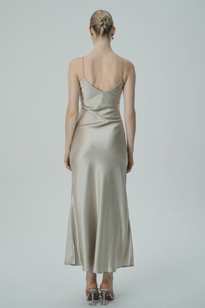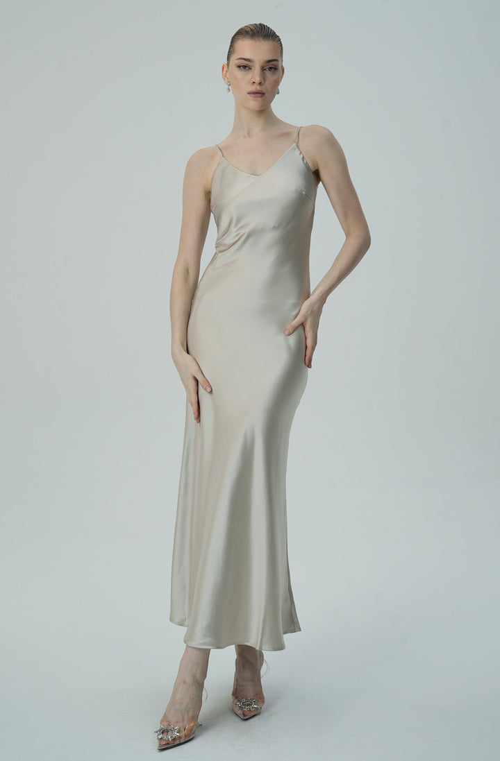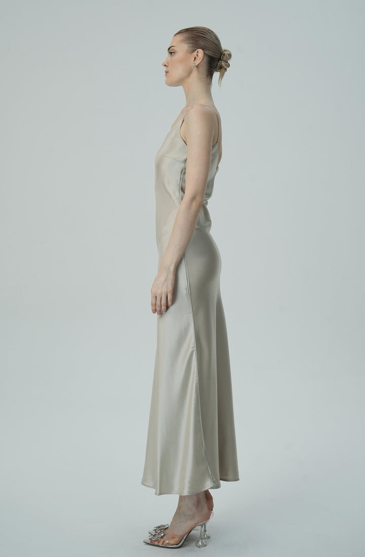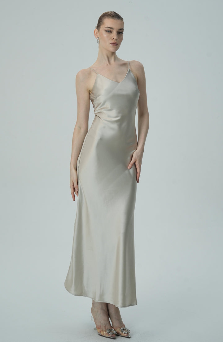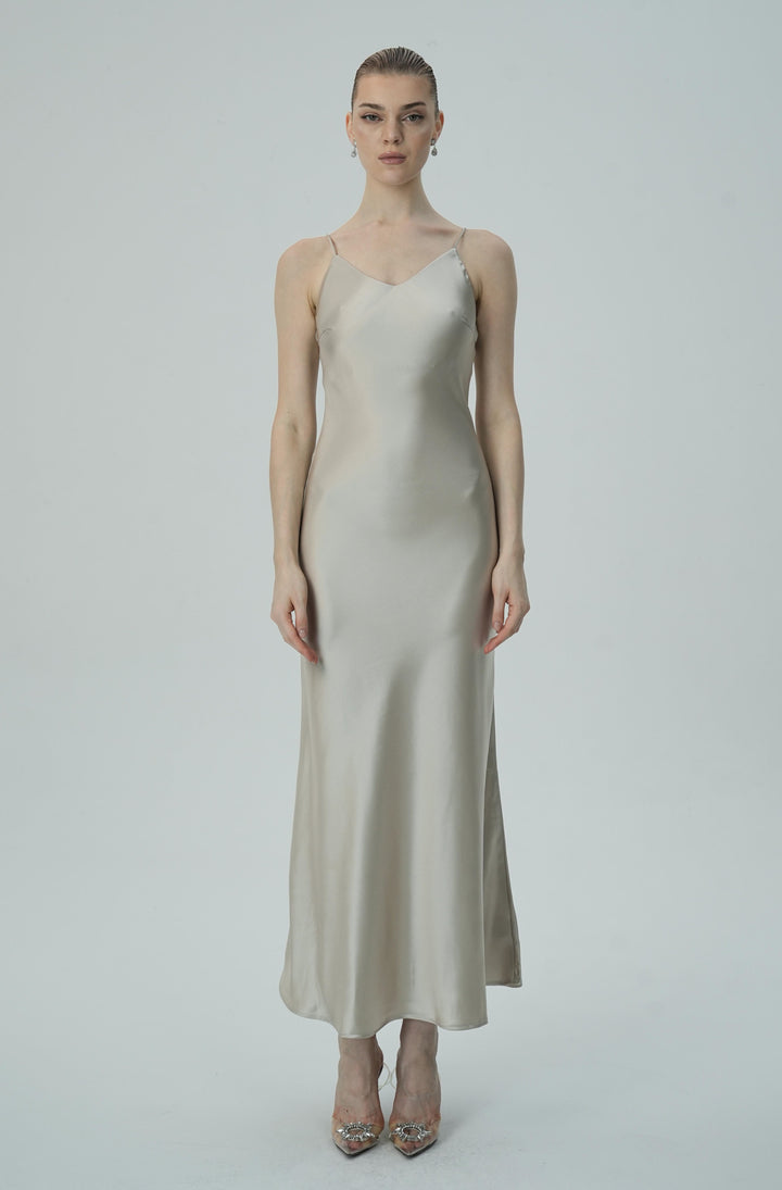 Saten Dokulu Minimalist Spagetti Askılı Elbise – Zarif ve Zamansız