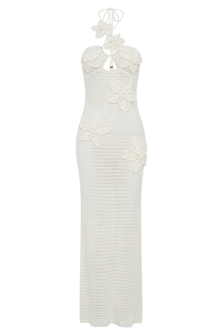 Beverly Floral Aplike Tığ İşi Uzun Elbise