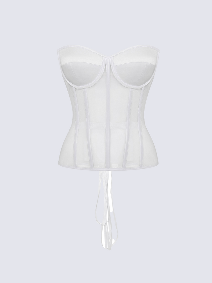 Aysham Şeffaf File Korse | Push-Up Destekli & Bağcıklı Bel Tasarımı