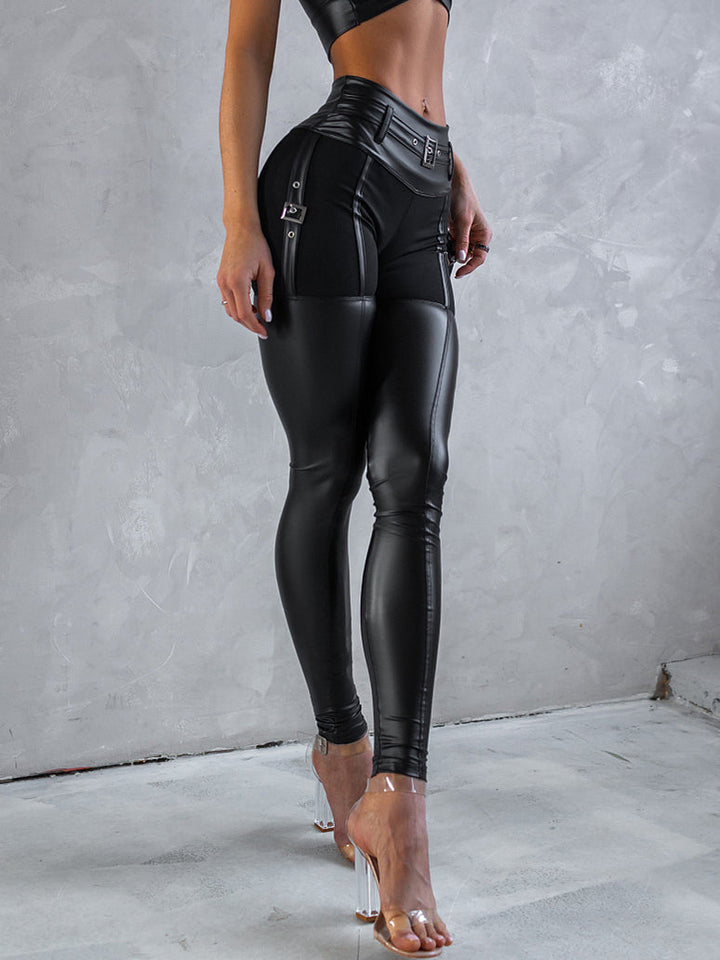 Parlak Çapraz Büküm Metal Düğmeli Kalça Kaldırma Tayt