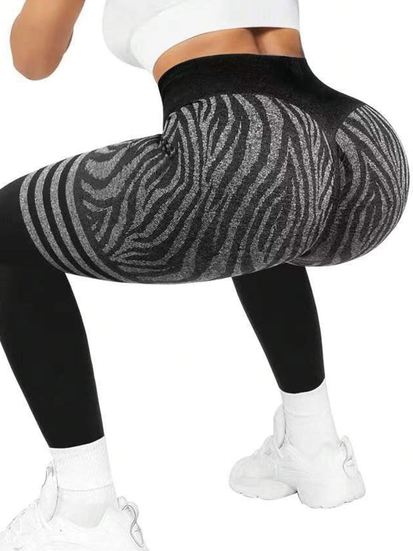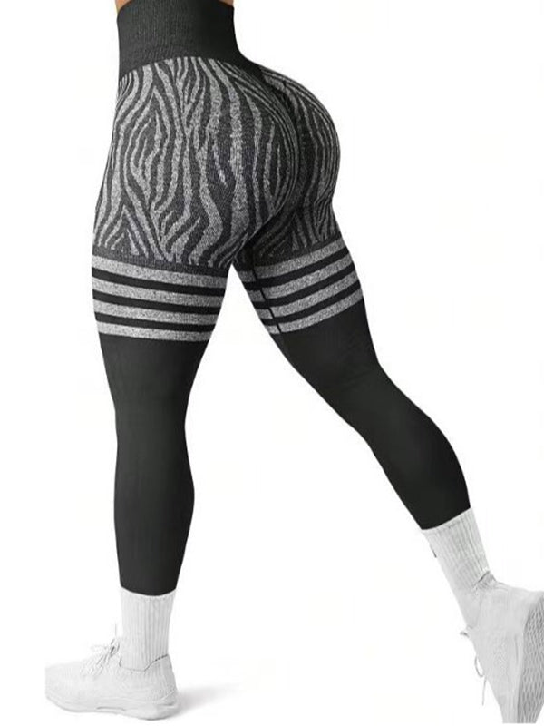 Zebra Desenli Çizgili Buruşuk Popo Taytı