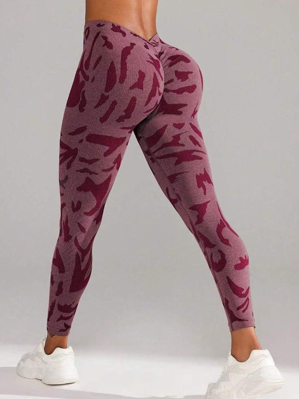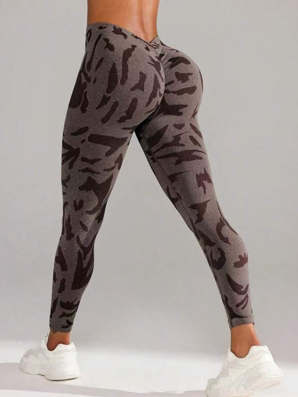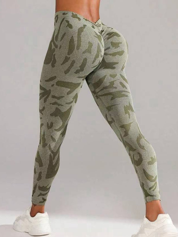 Seksi Kamuflaj Derin V Sırtlı Buruşuk Popo Taytı
