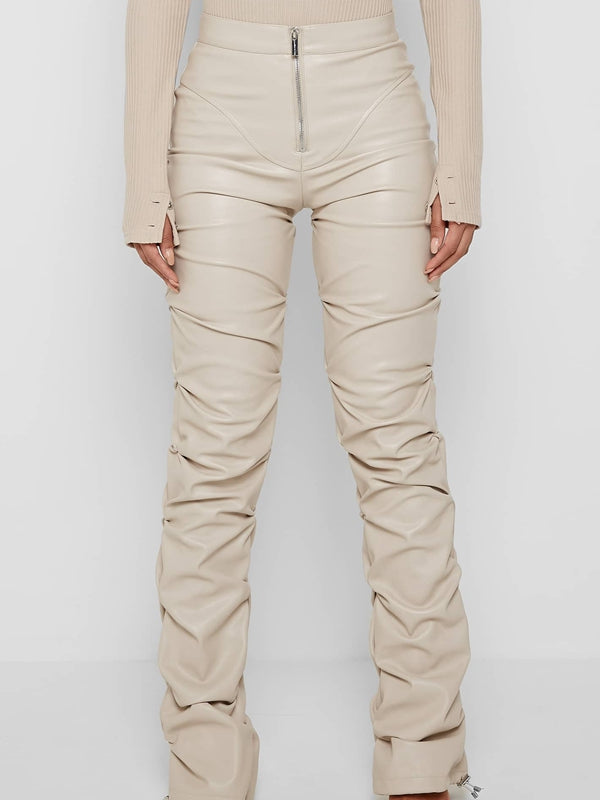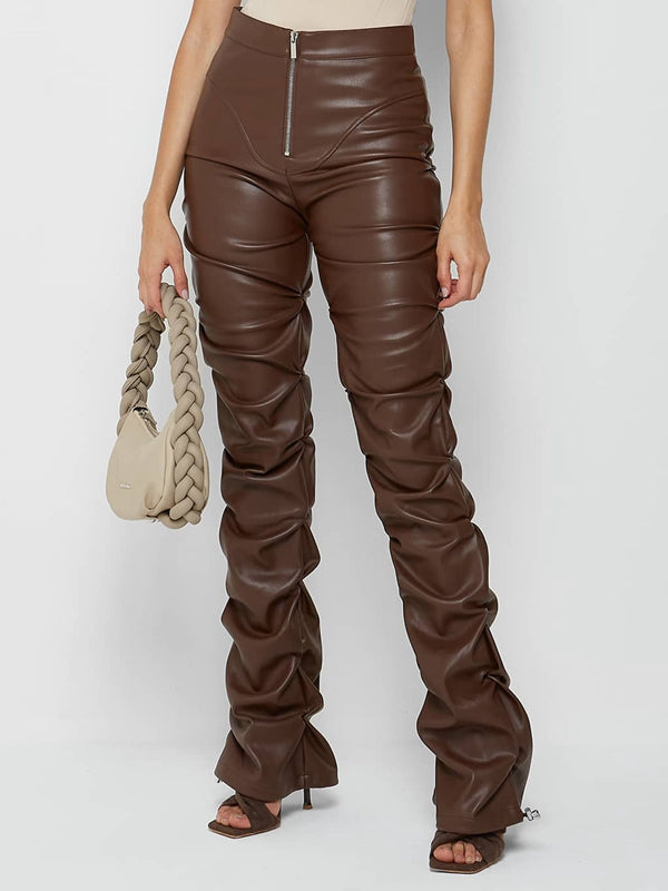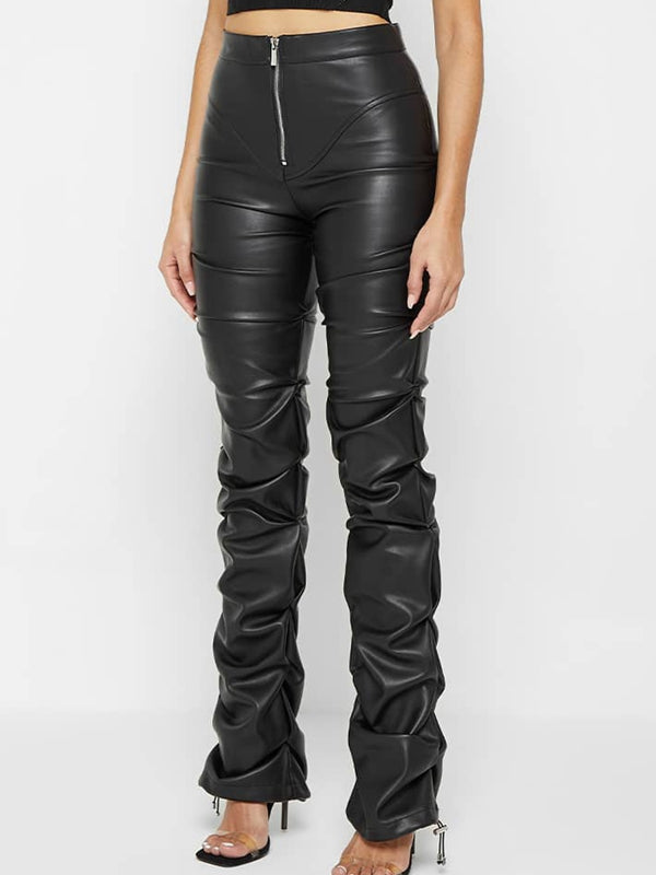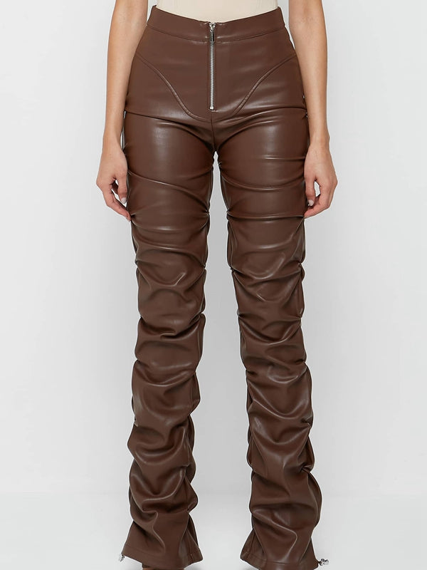Deri Katlanır Fermuarlı Moda Taytları