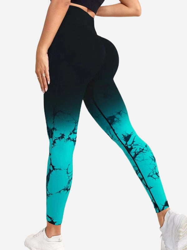 Sıcak Tie-Dye Ombre Buruşuk Popo Taytı