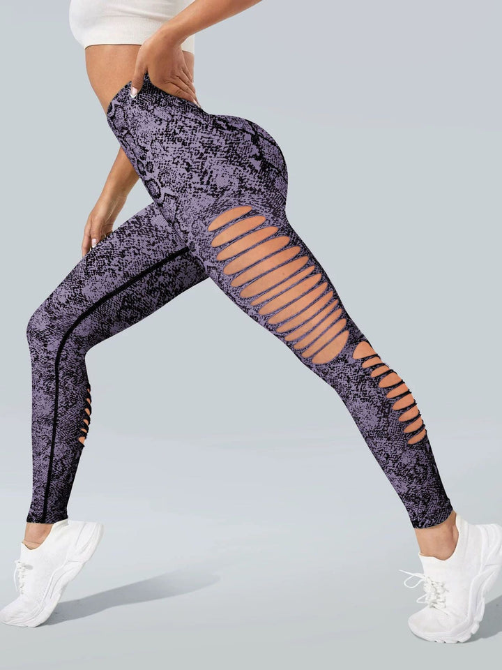 Yılan Desenli Hollow Out Yüksek Bel Dikişsiz Tayt