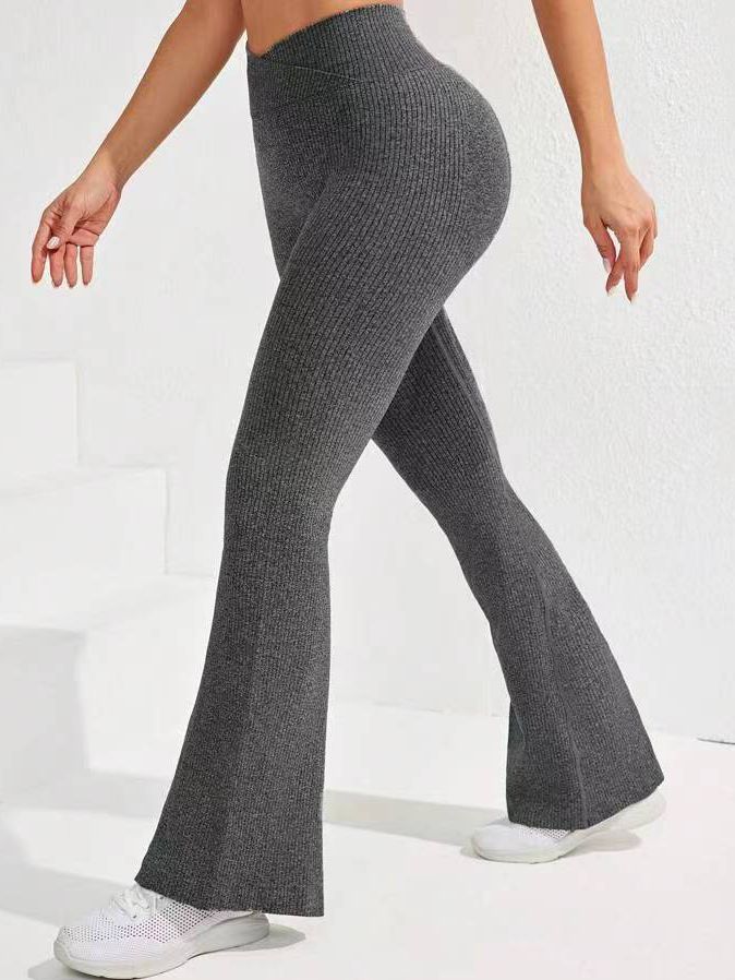 Düz Renk Çizgili Yüksek Bel Flare Pantolon