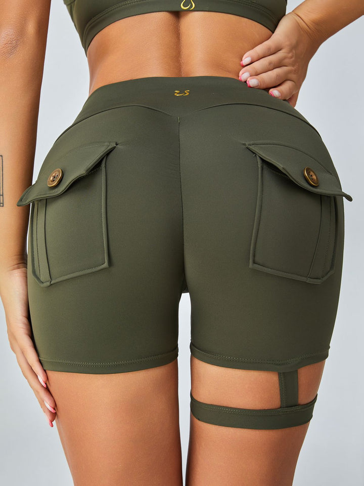 Benzersiz Kesik Cepli Fileli Buruşuk Kalça Spandeks Spor Salonu Şortu