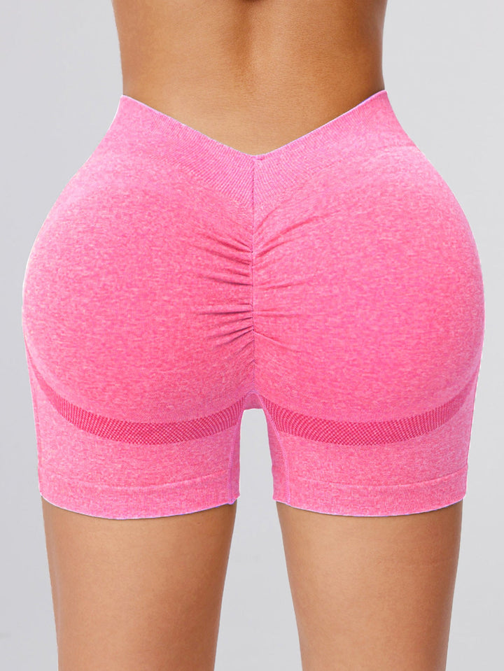 Derin V Sırtlı Buruşuk Kalça Dikişsiz Şort