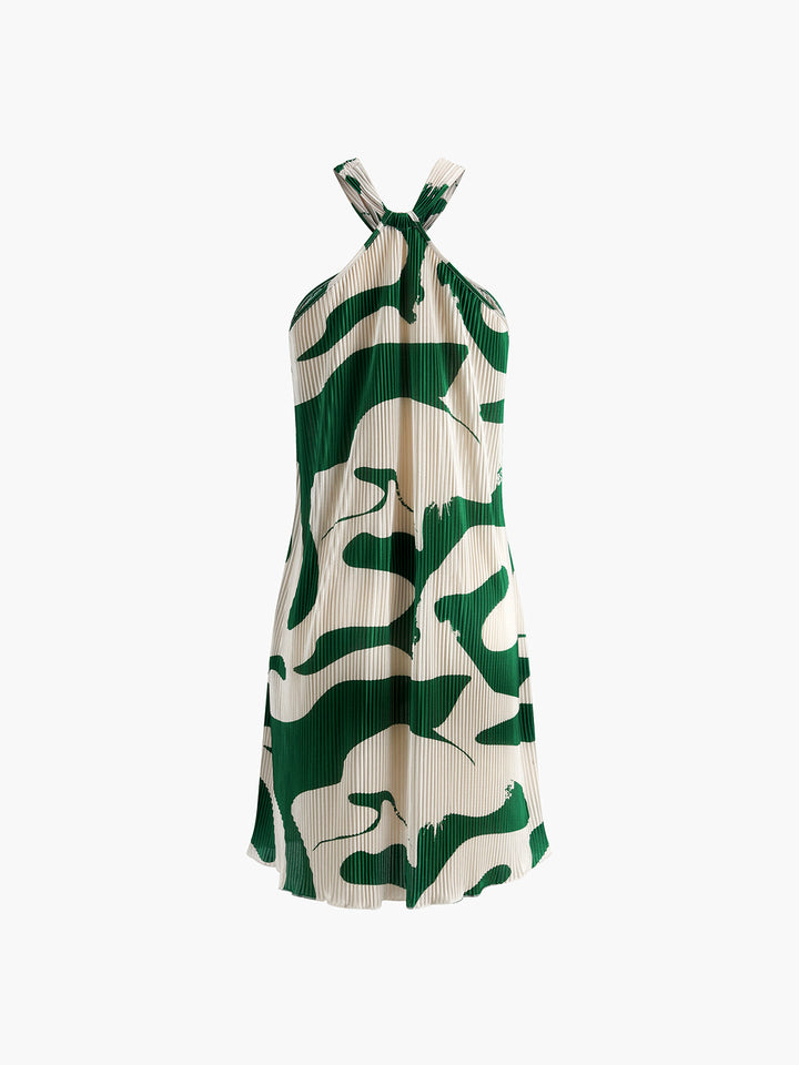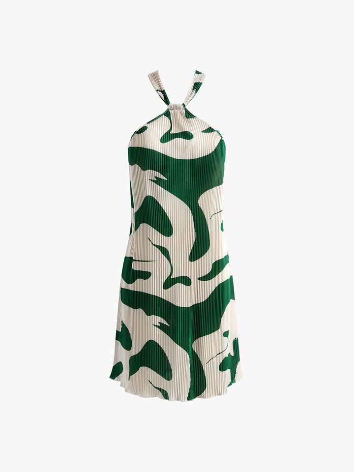 Günlük Baskılı Halter Kolsuz Kısa Elbise