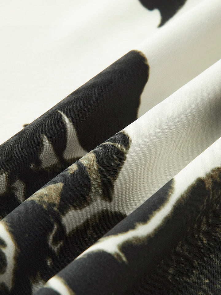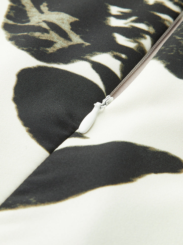 🌸 Şık Stil: Çarpıcı bir baskı ve bisiklet yaka ile tasarlanan bu askısız elbise, her durum için zamansız bir görünüm sunar.