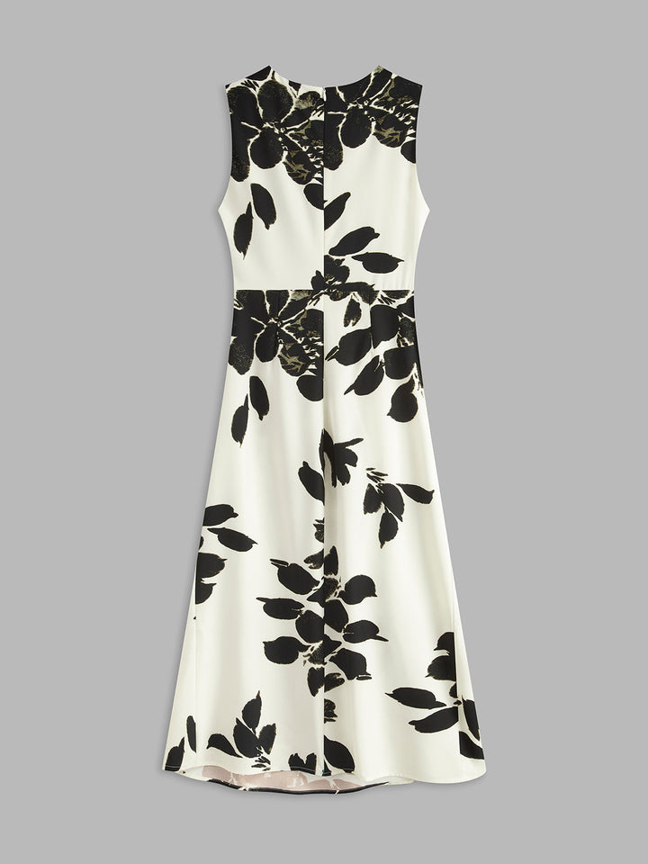Çekici Çiçek Desenli Kolsuz Plise Elbise