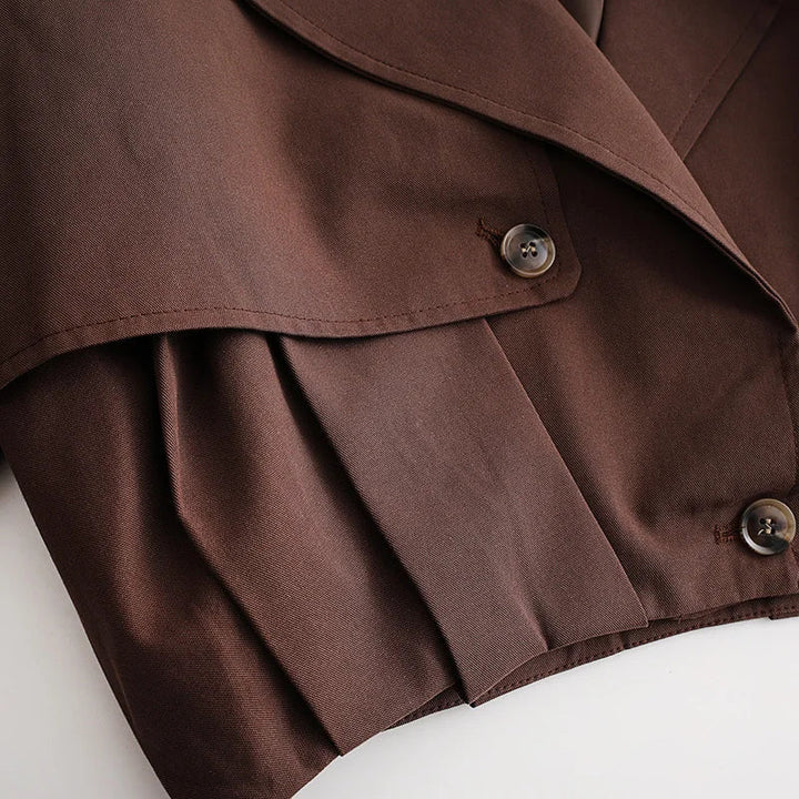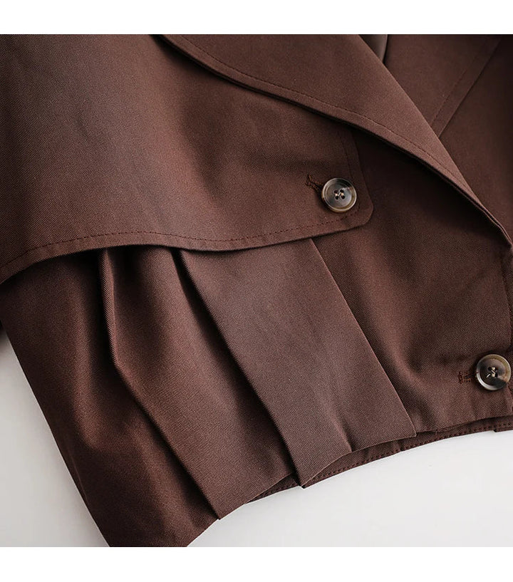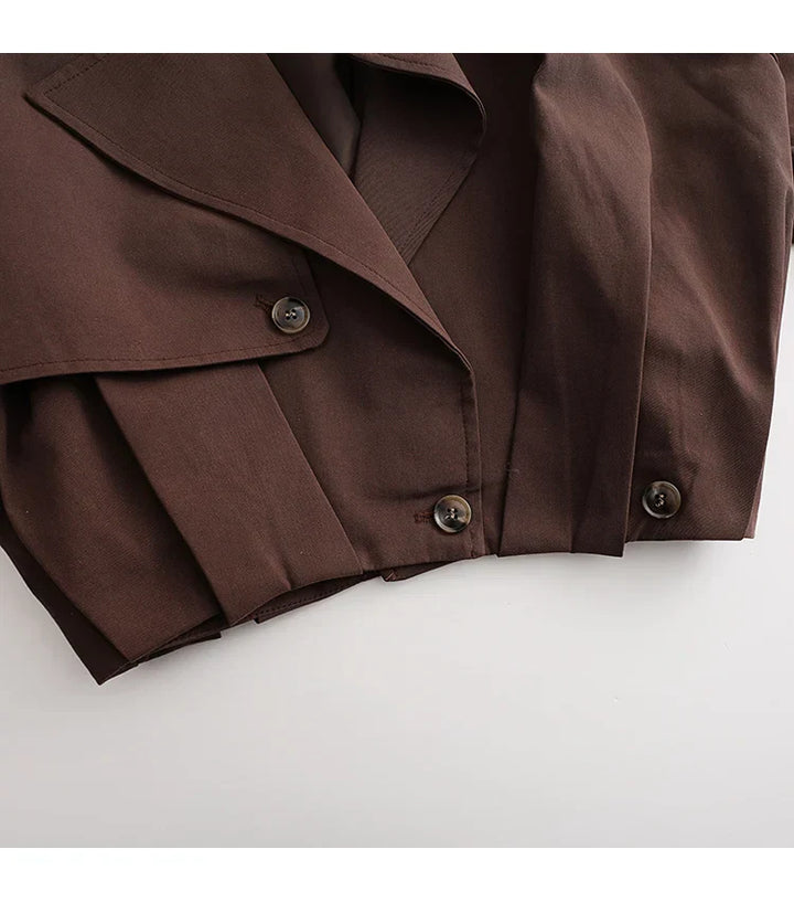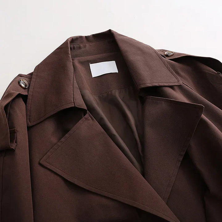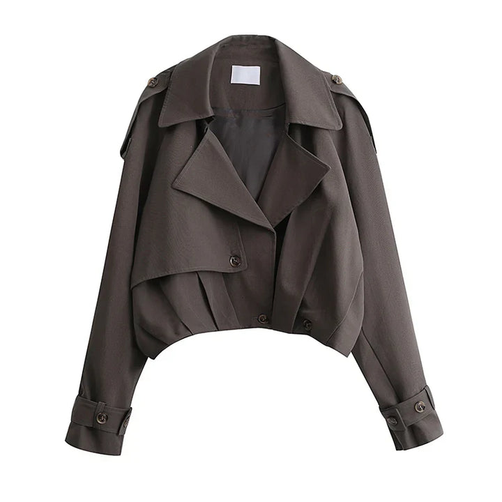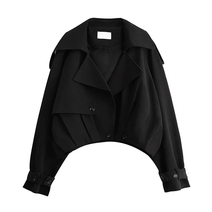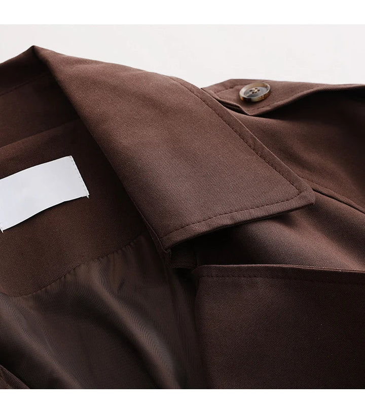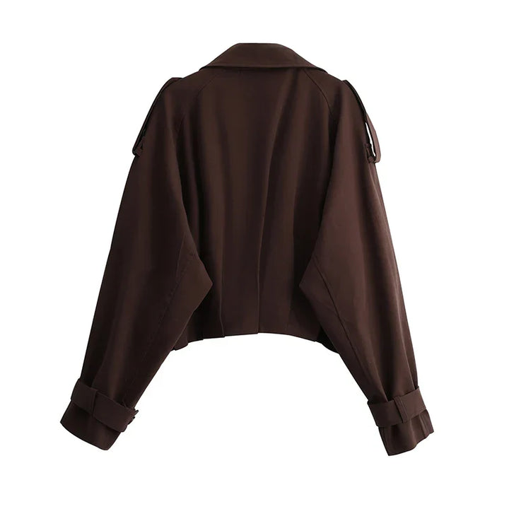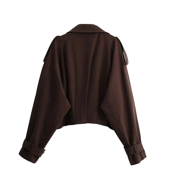Modern ve şık bir tarz için tasarlanan kısa kadın trench coat, rahat kesimi ve kontrast kumaş detaylarıyla her kombine sofistike bir hava katar. Geçiş mevsimlerinde hem şıklığı hem de konforu bir arada sunar.