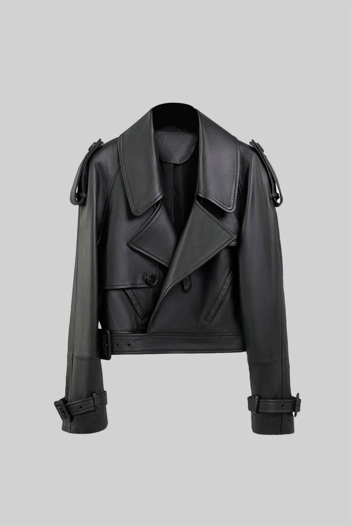 Çift Düğmeli Vegan Deri Ceket