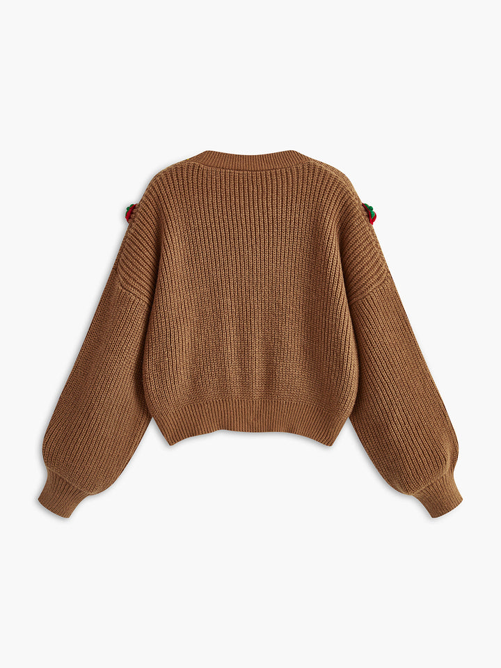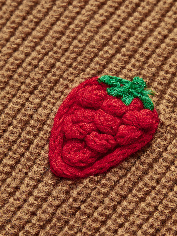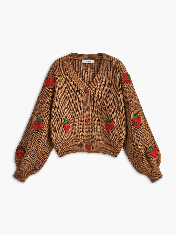 Çilek Nakışlı Düğmeli Hırka