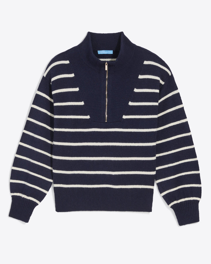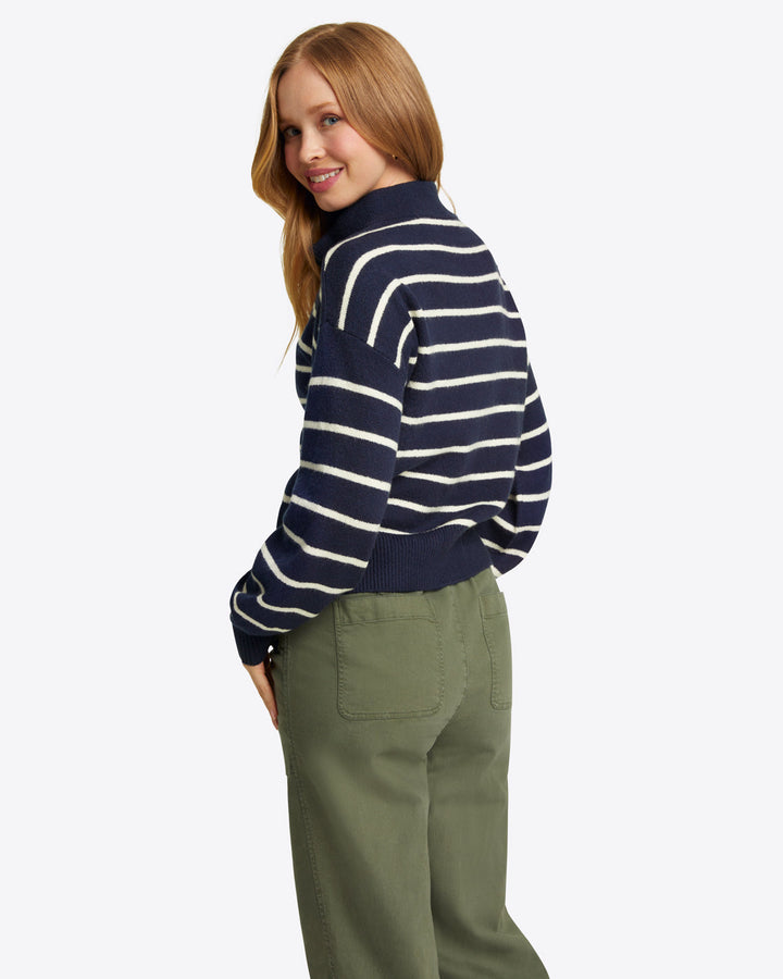 Yumuşak ve esnek pamuk karışımıyla örülen, fermuarlı boğaz detayıyla tamamlanan Striped Quarter-Zip Kazak hem konforlu hem de havalı bir stile sahip. Jean, tayt ya da şortlarınızla yılın her döneminde keyifle kombinleyebilirsiniz.
