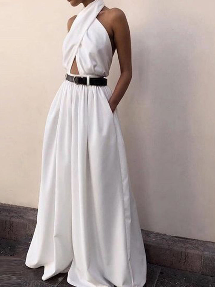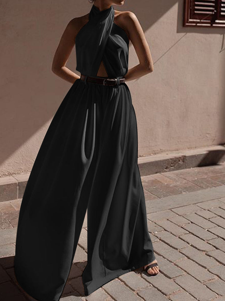 Çapraz Askılı Sırtı Açık Kemersiz Tulum