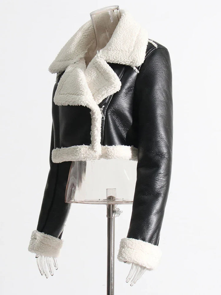 Şıklık ve konforu bir arada sunan bu modern kısa ceket, her kombinde tarzınızı ön plana çıkarır. PU deri ve suni kuzu yünü karışımıyla hem sıcak tutar hem de cool bir görünüm kazandırır. Kısa tasarımıyla günlük şıklığa sportif bir dokunuş ekler, ister jean ister elbise ile kolayca kombinlenebilir.