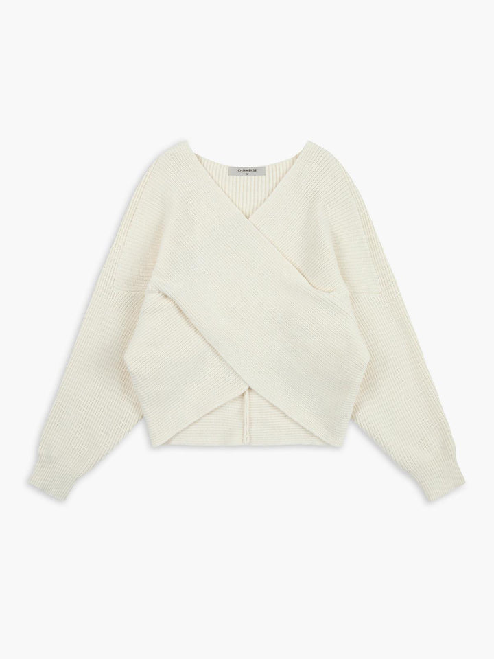 V Yaka Bej Örgü Crop Kazak
