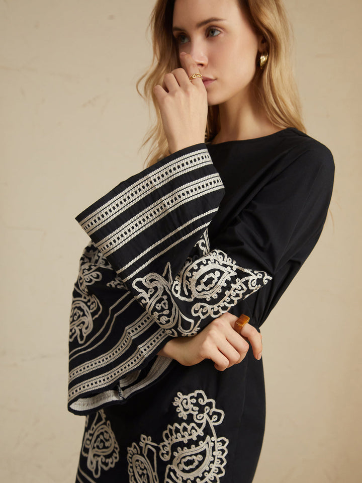 Narin Nakışlı Çan Kollu Kısa Elbise