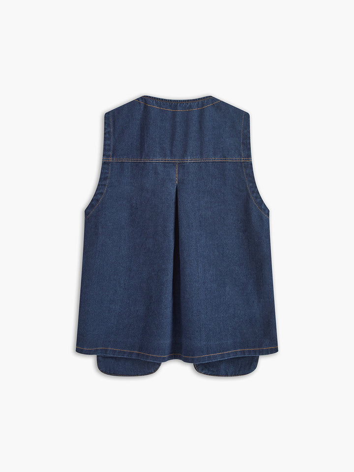 Kravat Yaka Cepli Pileli Denim Uzun Üst – Günlük ve Şık