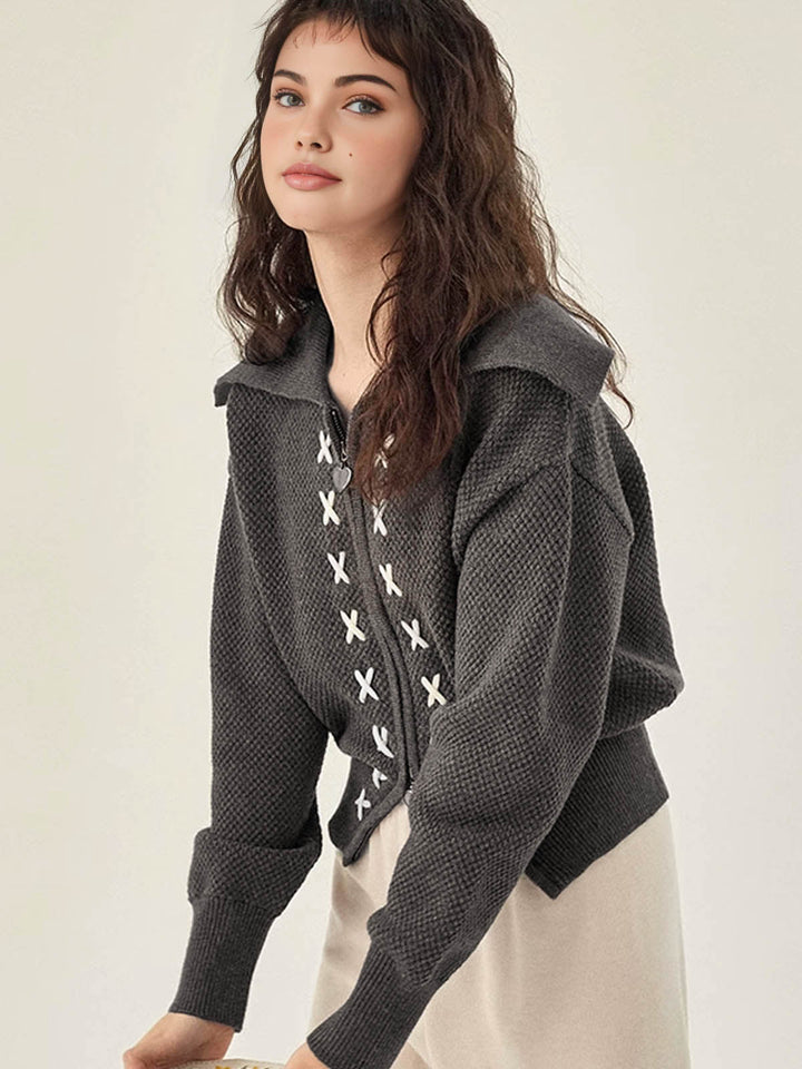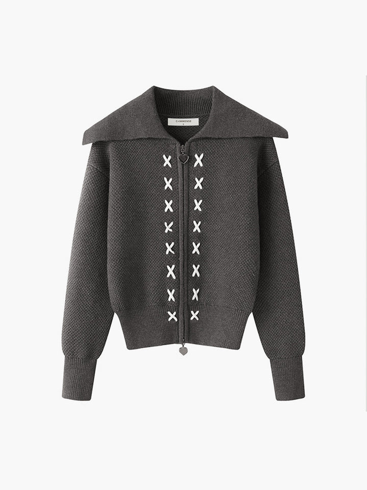 Denizci Yaka Çift Yönlü Fermuarlı Hırka