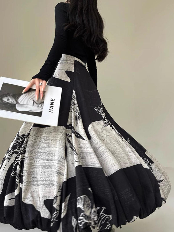 Eşsiz siyah beyaz desenleri ve balon kesimiyle dikkat çeken bu etek, modern ve sofistike bir stil sunuyor. Günlük kombinlerde fark yaratmak isteyenler için mükemmel bir seçim!