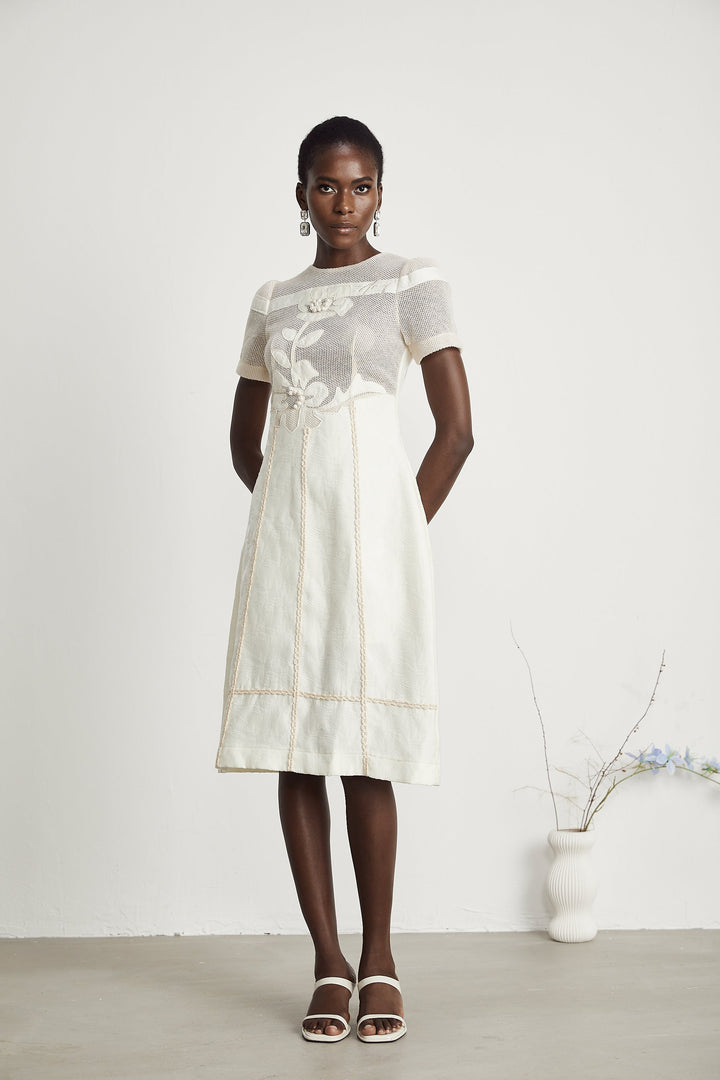 Diane Çiçek İşlemeli Ajur Midi Elbise