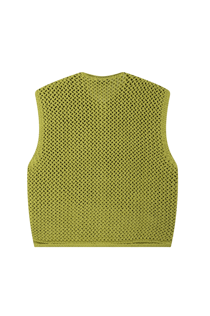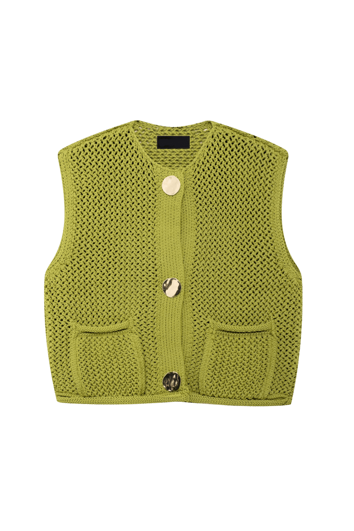 Önü açık şık tasarıma ve klasik yuvarlak yakaya sahip bu tığ işi dantel yelekle gardırobunuzu yükseltin. Narin dantel deseni rahat, örme kumaşa sofistike bir dokunuş katarak onu hem şık hem de konforlu hale getiriyor.