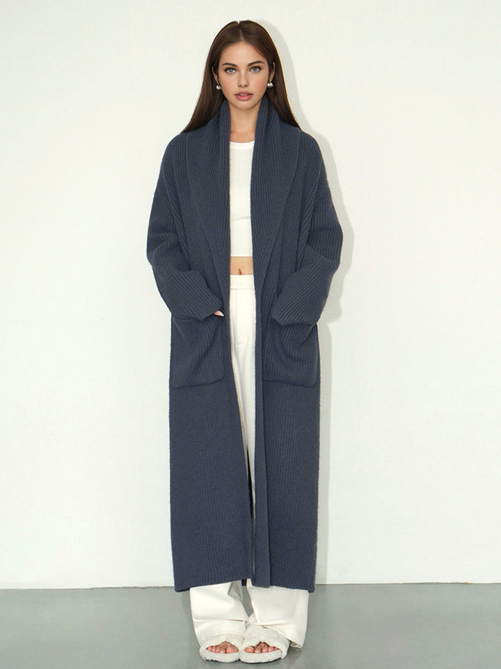 Düz Nervürlü Cepli Uzun Hırka