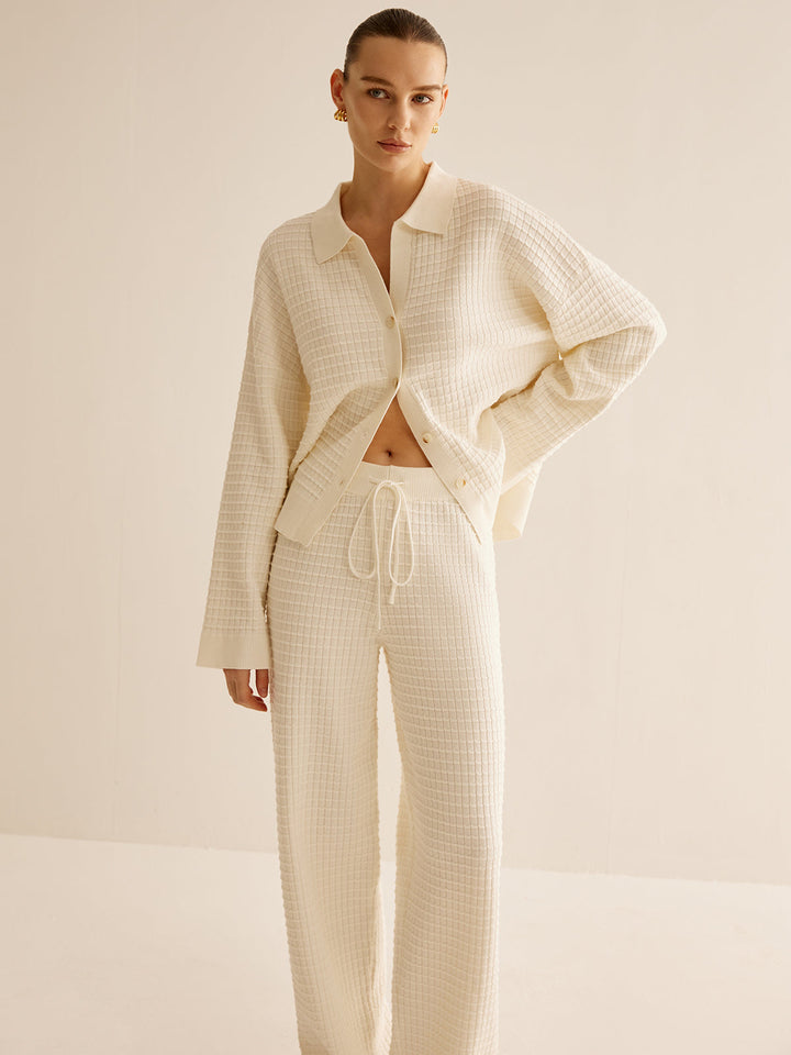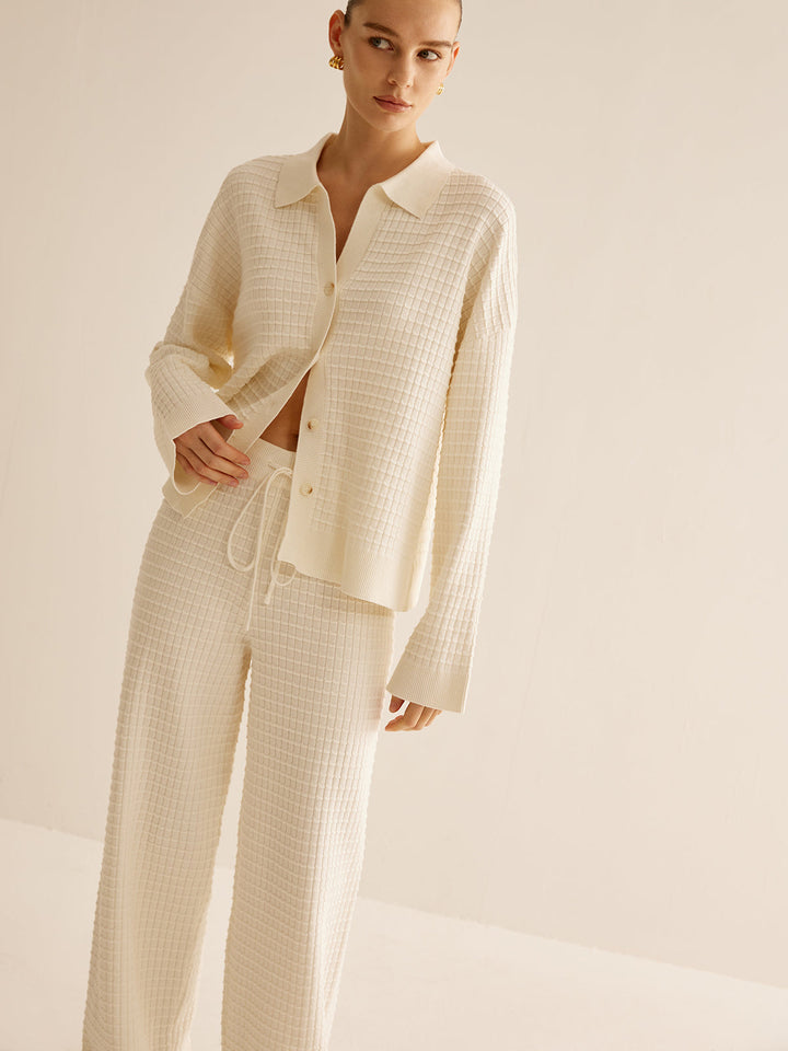 Ekose Düğmeli Yaka Hırka