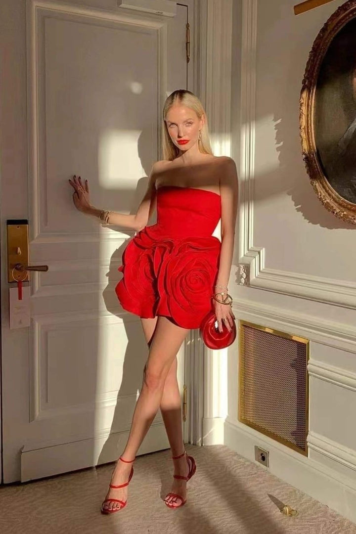 Straplez Çiçek Detaylı Mini Elbise ile şıklığı kucaklayın. Bu elbise, daha fazla çekicilik için narin bir çiçek detayıyla süslenmiş, şık askısız bir tasarıma ve kolsuz bir siluete sahiptir. Mini uzunluğu eğlenceli ve hoş bir uyum sunar.
