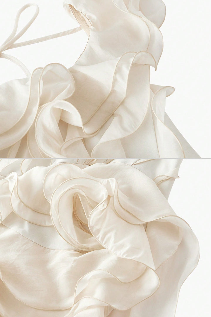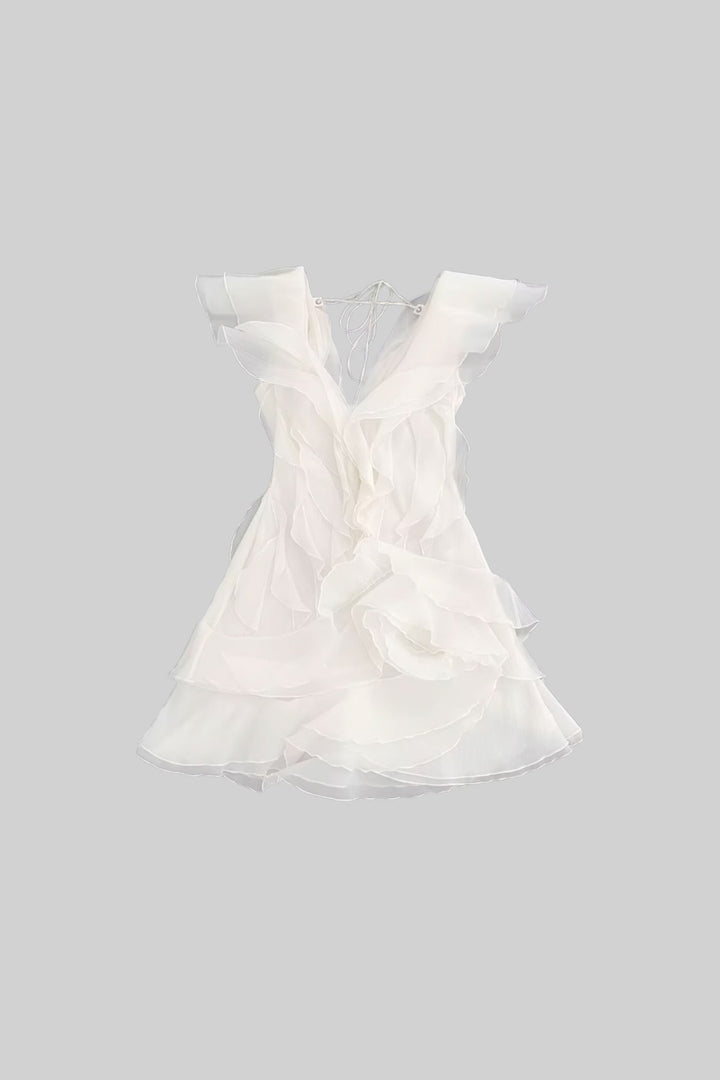 Beyaz Katmanlı Şeffaf Mini Elbise, Fırfırlı Tasarım ile