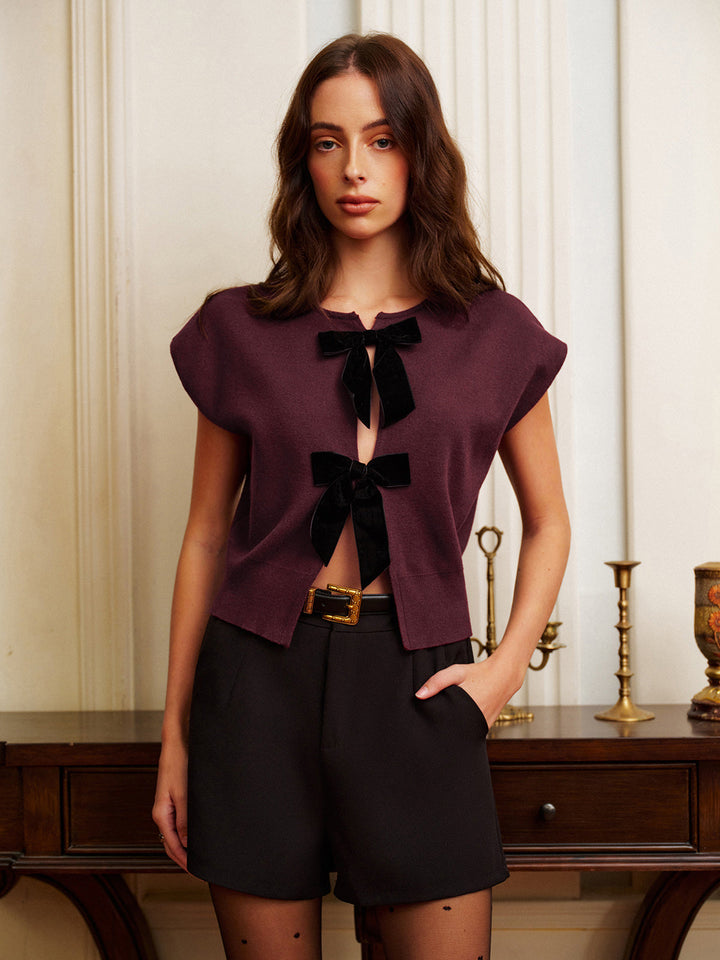 Fiyonk Dekorlu Yırtmaçlı Kazak Yelek