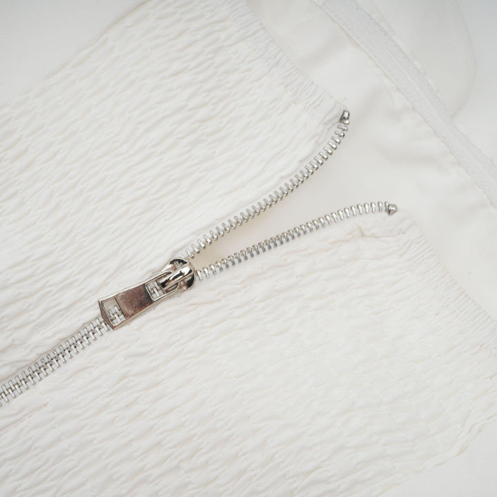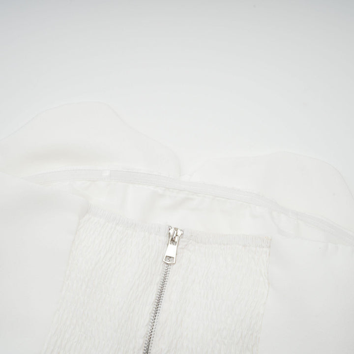 Flora Elegance Beyaz 3D Çiçek Detaylı Straplez Bluz