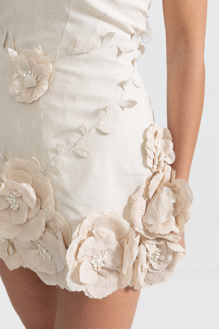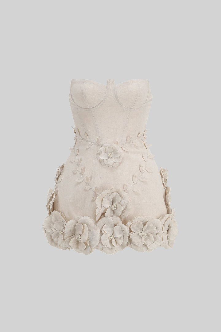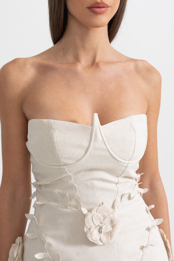 3D Çiçek Aplikeli Büstiyer Elbise - Ivoire
