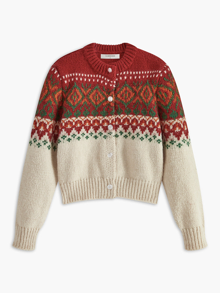 Geometrik Desenli Göğüslü Hırka