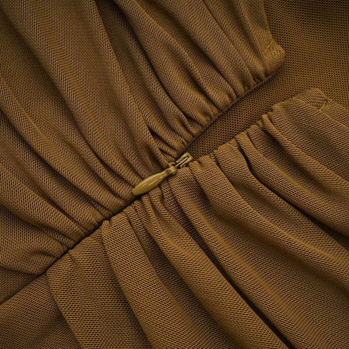 Gloria çapraz sırt dekolteli kapüşonlu maksi elbise