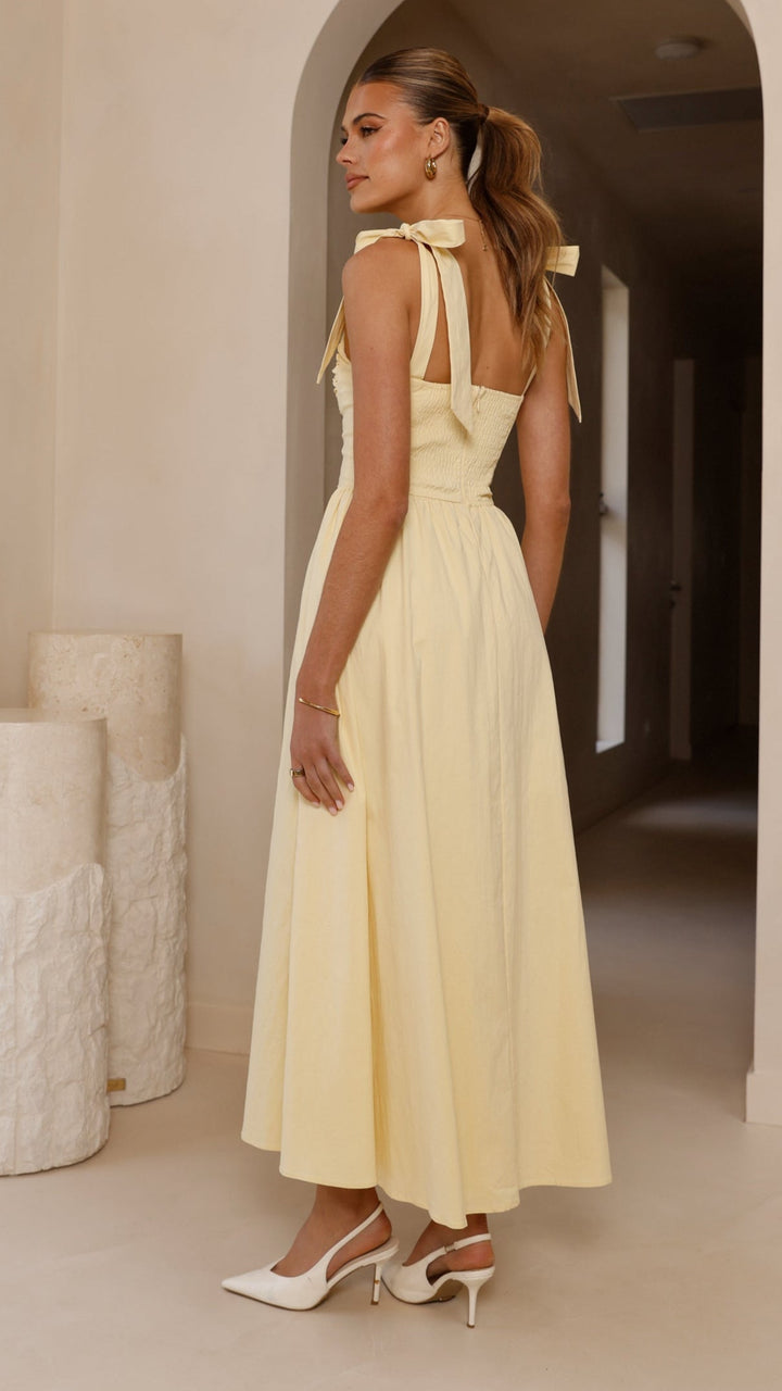 DETAYLAR Maxi boy Ayarlanabilir bağlamalı askılar Kare yaka Büzgülü, yapılandırılmış göğüs kısmı Korsaj tarzı üst beden Görünmez arka fermuar Büzgülü arka panel Astarlı %65 Pamuk, %35 Polyester