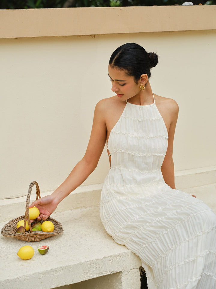 Halter Askılı Sırt Fırfırlı Elbise