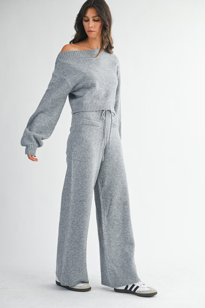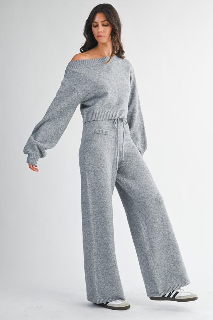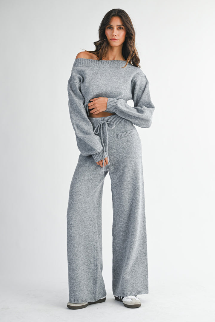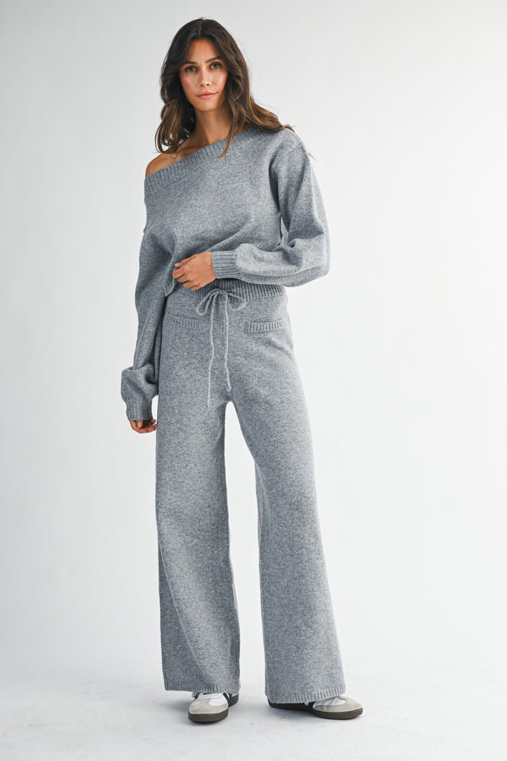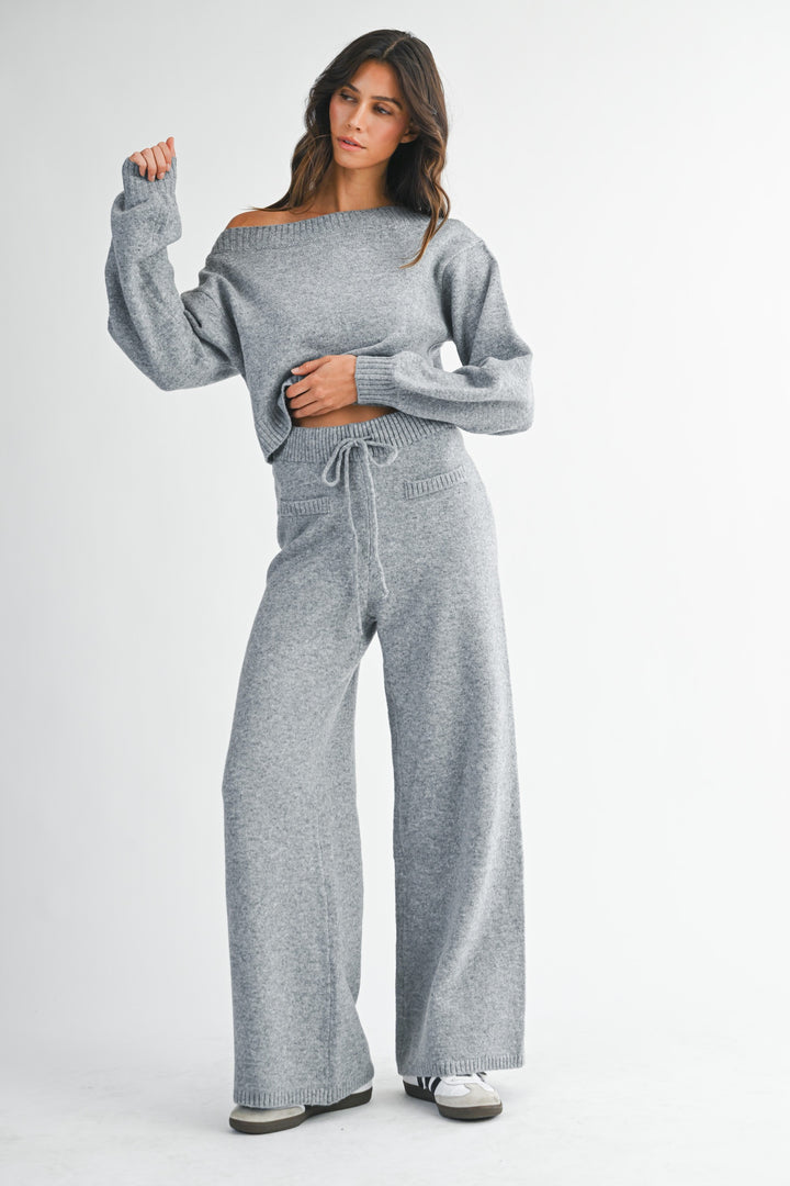 Beli lastikli, ip bağlamalı bol paça triko pantolon