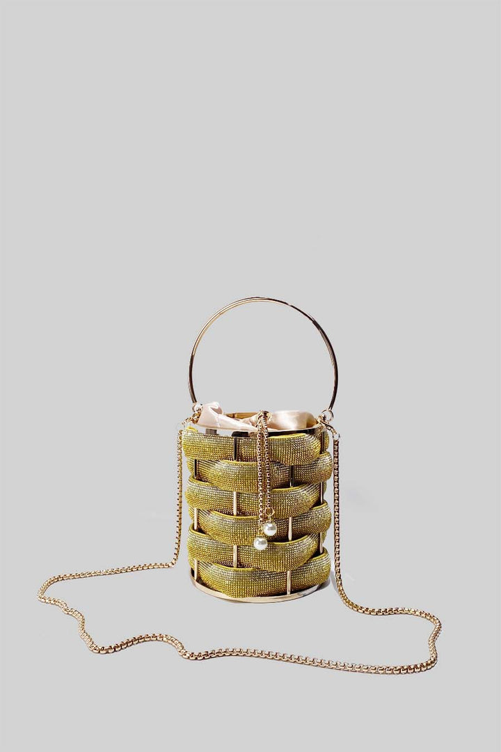 Lüks ve sofistike bir tasarıma sahip Altın Şık Kova Çanta, zarif boncuk işlemeleri ve dekoratif süslemeleriyle göz kamaştırıyor. Şık saten büzgülü iç kısmı, eşyalarınızı güvenle saklamanızı sağlarken, kompakt tasarımı modern ve zarif bir estetik sunuyor.