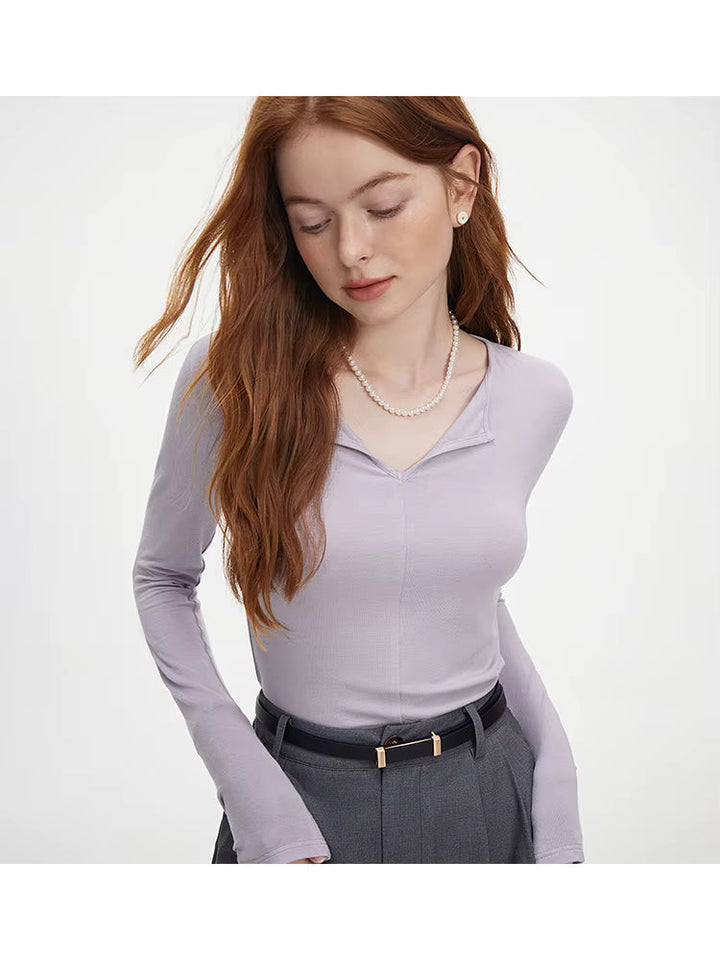 Kadın V Yaka Uzun Kollu Slim Fit Pamuk Kazak