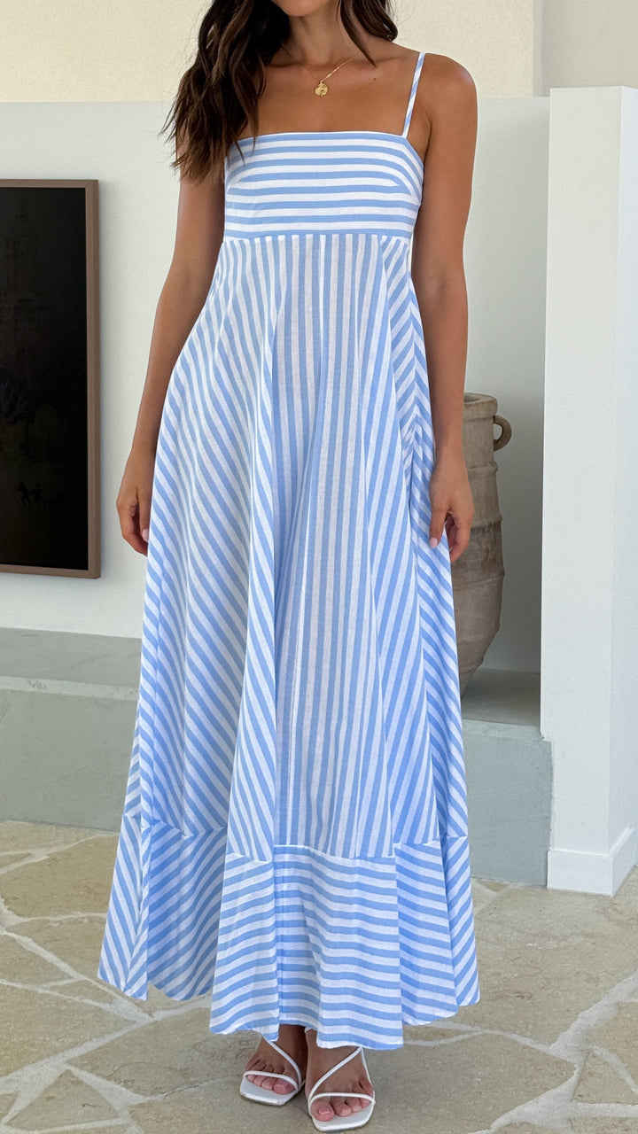 Kaethe Maxi Elbise - Bebek Mavisi Çizgili