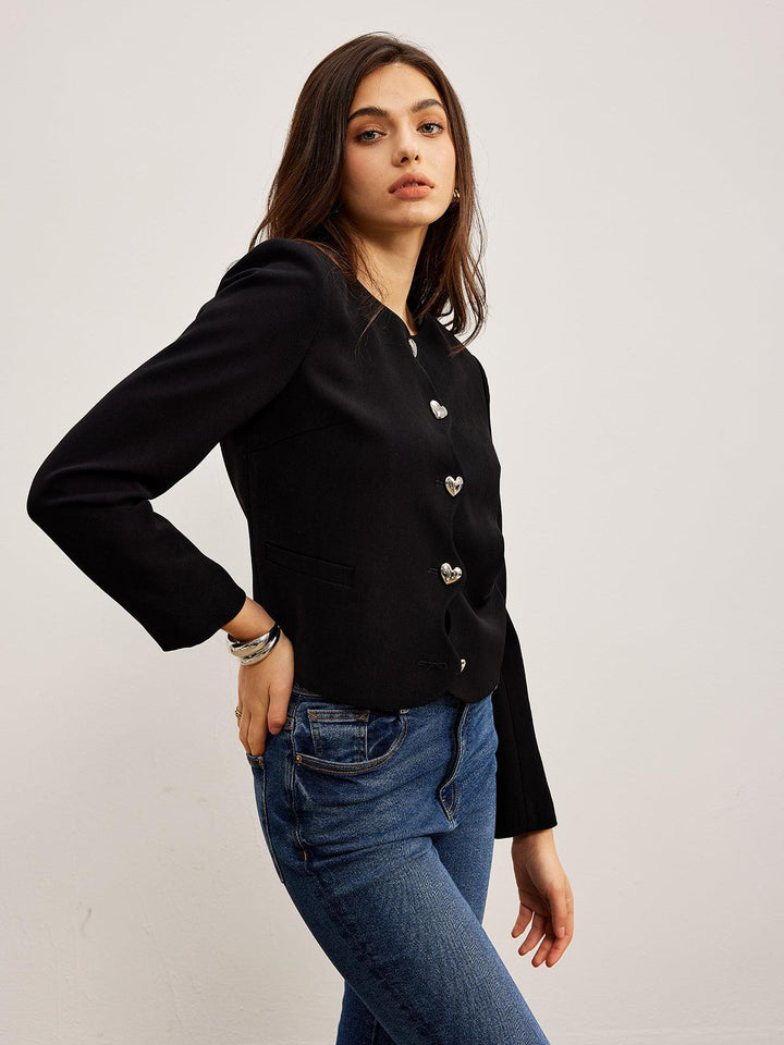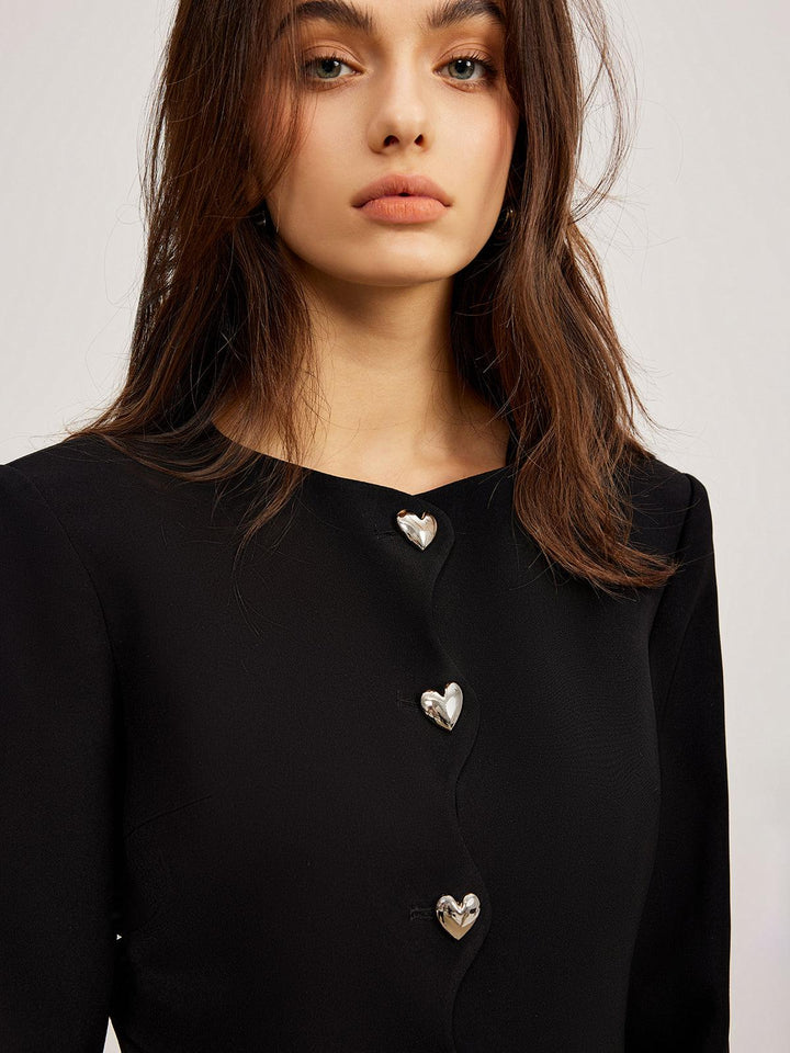 Kalp Düğme Detaylı Siyah Kısa Ceket