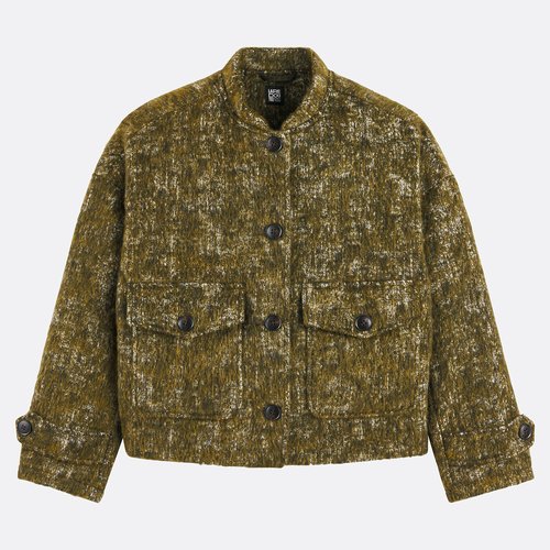 Kısa Yün Karışımlı Düğmeli Ceket – Yüksek Yaka & Cep Detaylı, Şık ve Sürdürülebilir