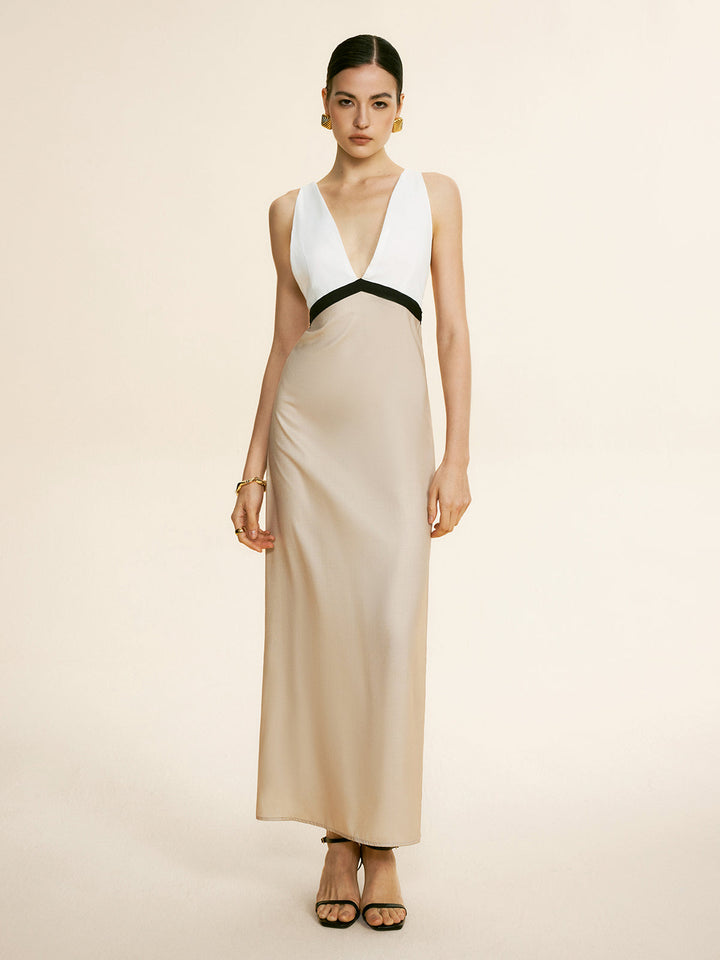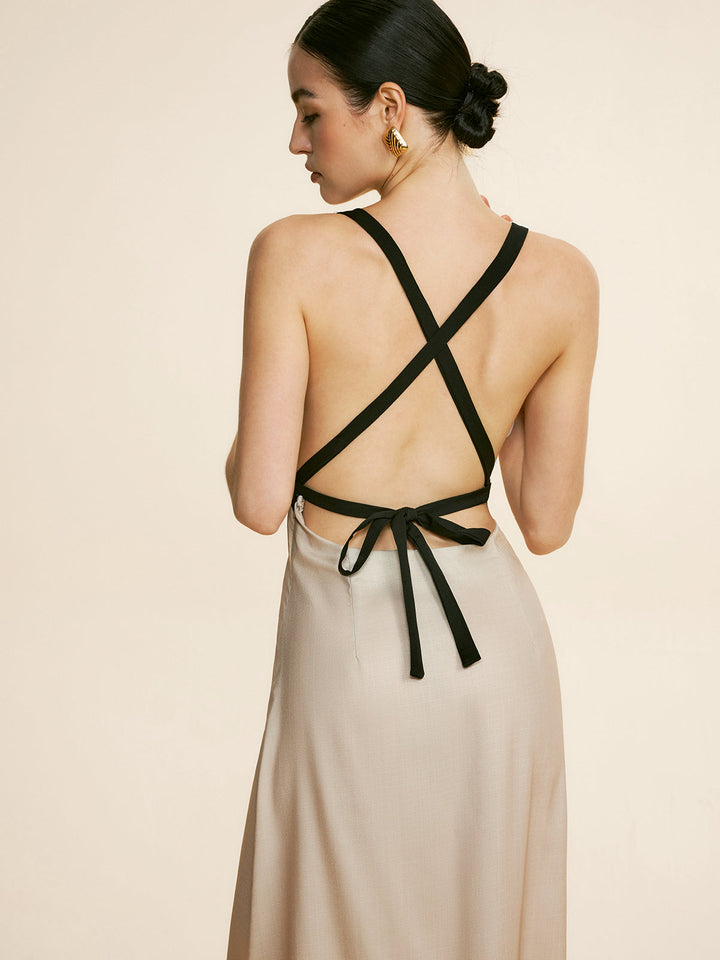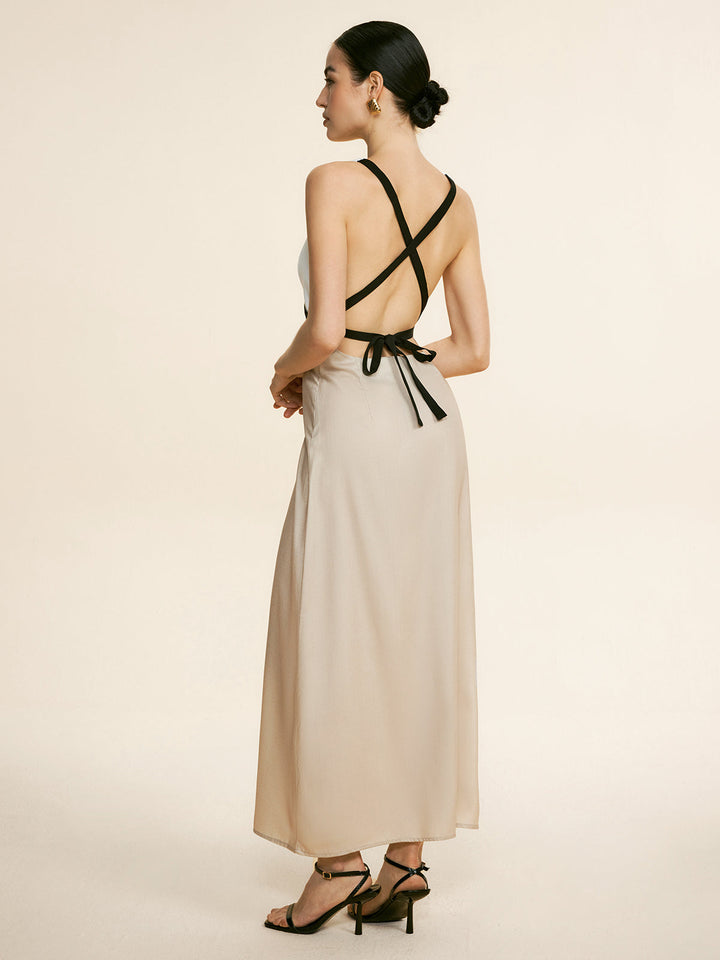 Kontrast Bağlama Detaylı Maxi Elbise – Şık ve Zarif