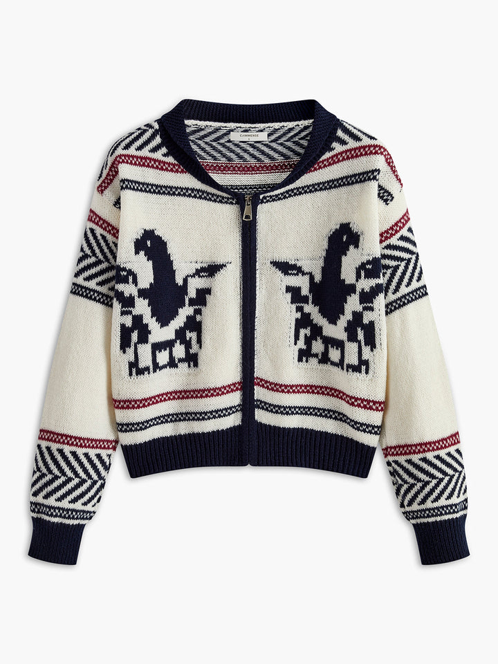 Kontrast Desenli Fermuarlı Kısa Hırka